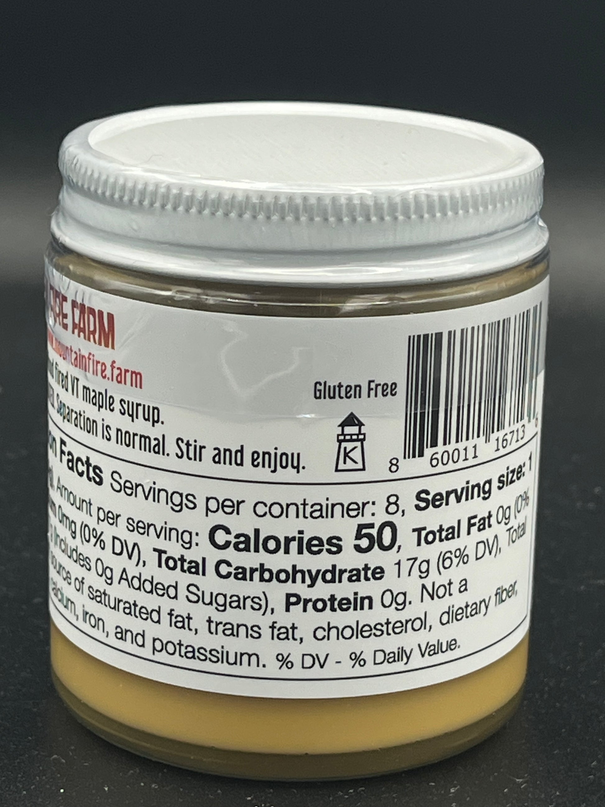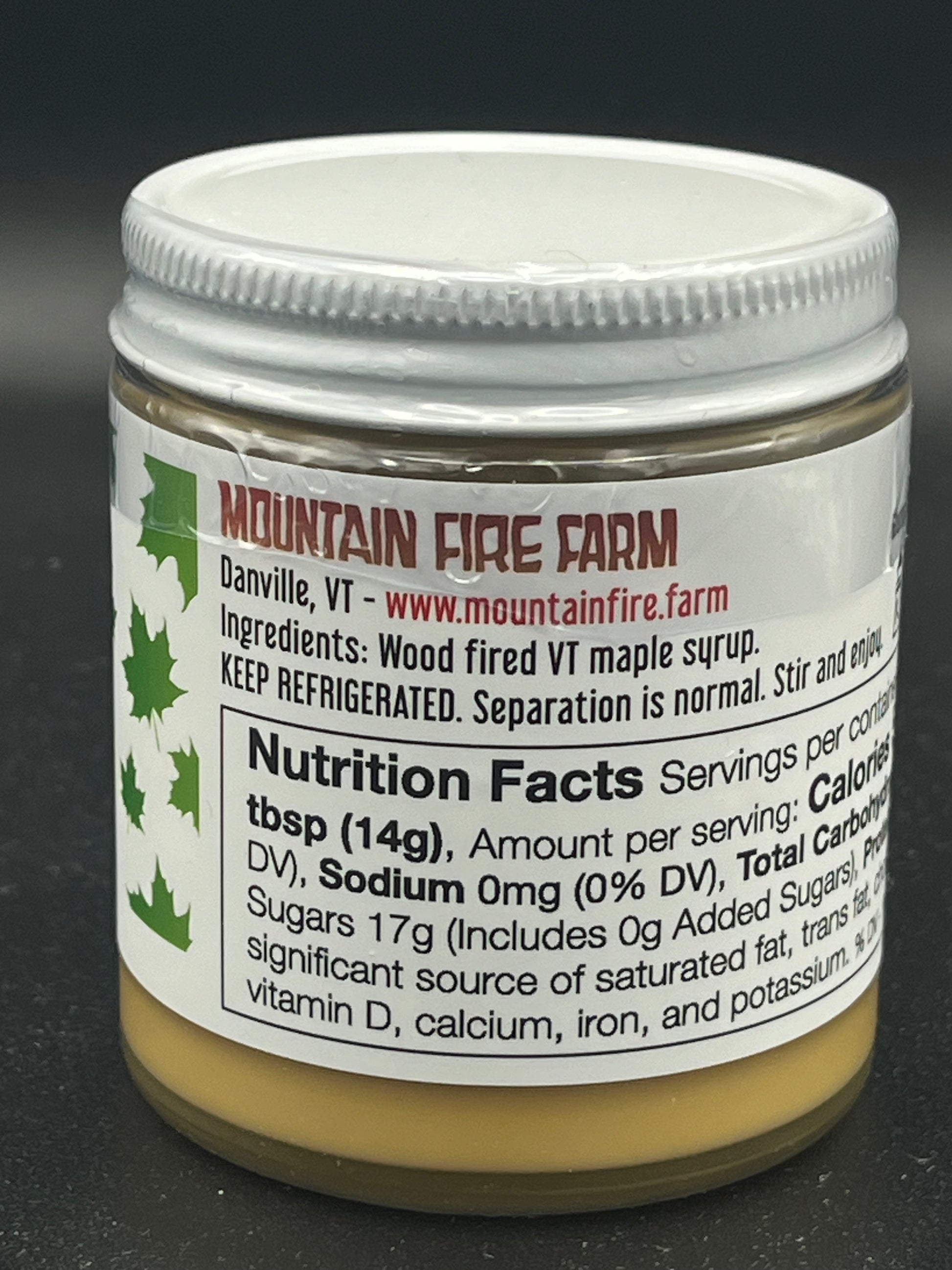 A glass jar filled with a quarter pound of maple cream made with wood fired Vermont maple syrup. And nothing else.
